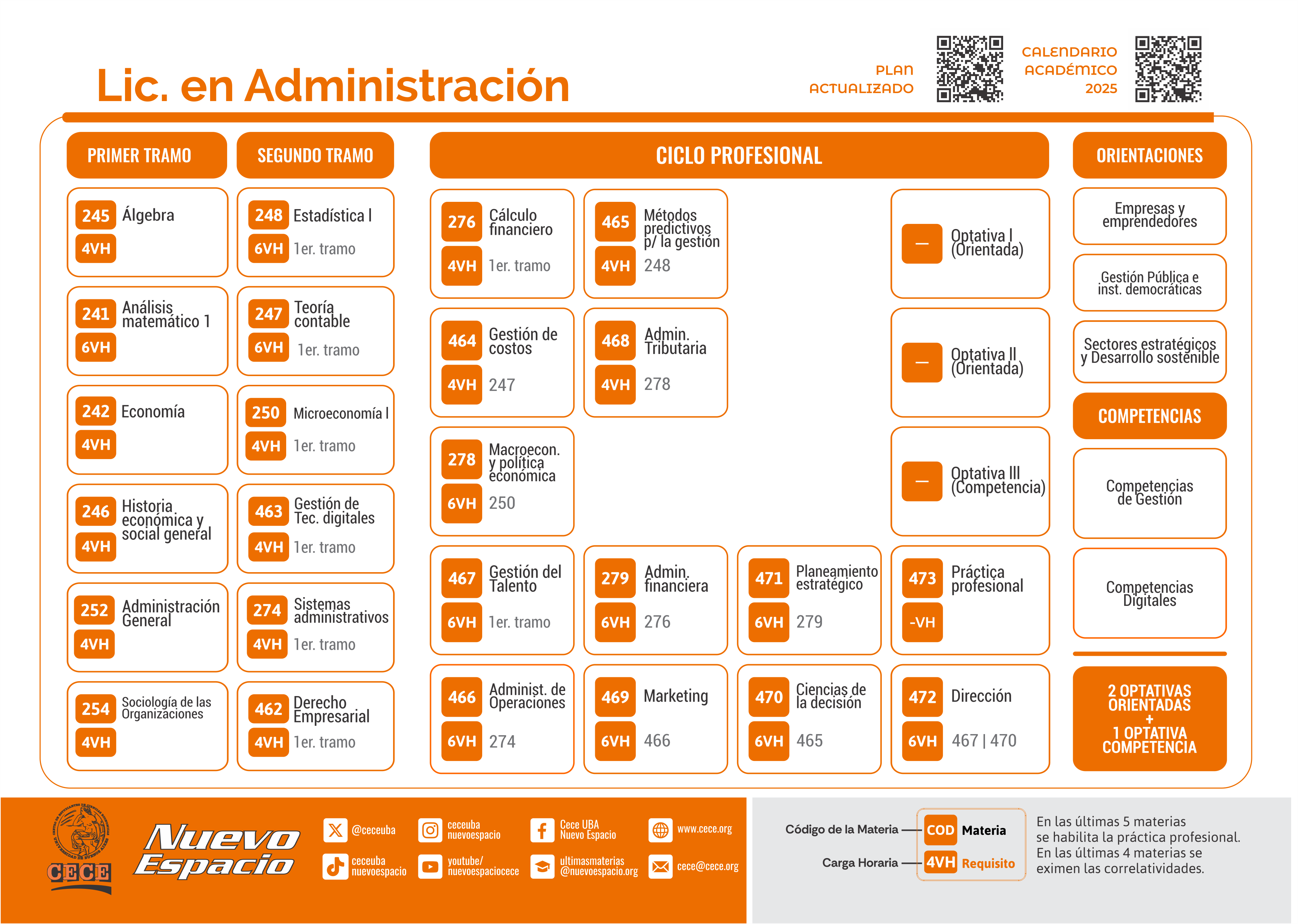 - 3 orientaciones: EMPRESA Y EMPRENDIMIENTO – GESTIÓN PÚBLICA – SECTORES ESTRATÉGICOS Y DESARROLLO SOSTENIBLE