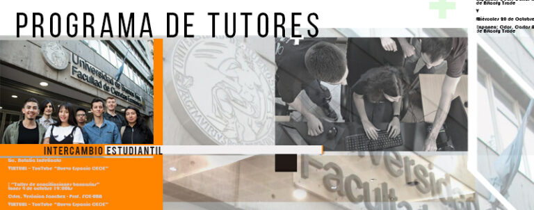 PROGRAMA DE TUTORES PARA ESTUDIANTES DE INTERCAMBIO Sé tutor de alguno de los estudiantes que viene de otros países a estudiar de intercambio a nuestra Facultad y aprovecha un interesante intercambio cultural. Charla informativa: Lunes 17 de febrero 18:30hs. Inscripción:…