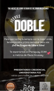 Descuento: 2×1 en tragos