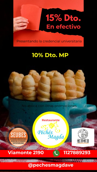 A continuación, les dejamos los locales adheridos y los descuentos a los que podemos acceder presentando la credencial universitaria, disponible en Mi Econ, haciendo clic en tu nombre y dirigiéndote al apartado “Mi credencial”.