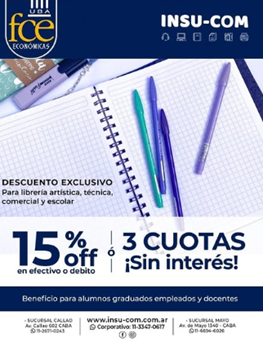 Por eso, en conjunto con la Secretaría de Extensión y Bienestar Estudiantil, llevamos a cabo una red de descuentos exclusivos para toda la comunidad educativa de Ciencias Económicas.